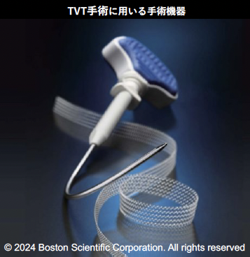 尿道周囲に10mm程度の細いメッシュテープを通して尿道を⽀える⼿術です。下半⾝⿇酔で⾏い、⼿術時間は1時間程度、⼊院は5⽇前後のことが多いです。